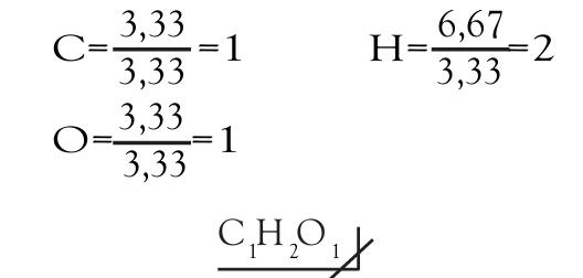 Se encontró un compuesto constituido por C, O y H donde se tiene 40% de C, 6,67% de H y 53,33% de O. Determina su fórmula empírica.