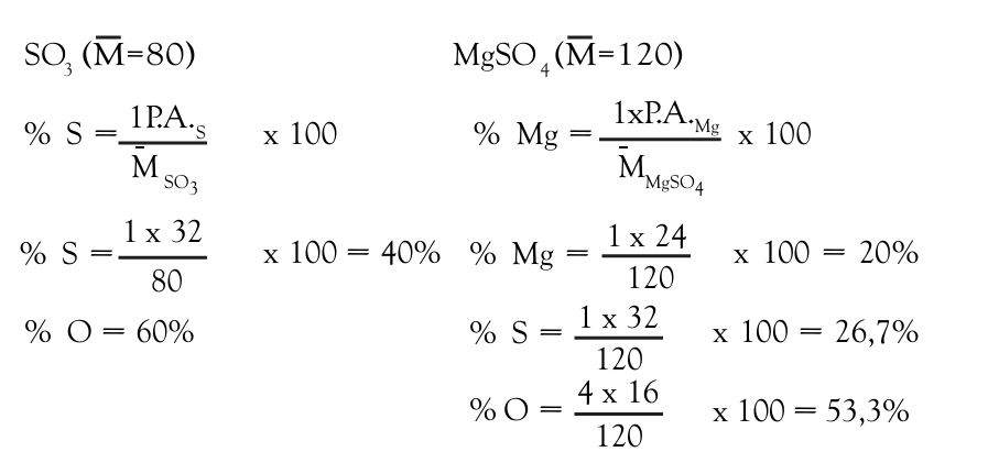 Ejemplo : Halla la composición centesimal de los átomos en los compuestos.