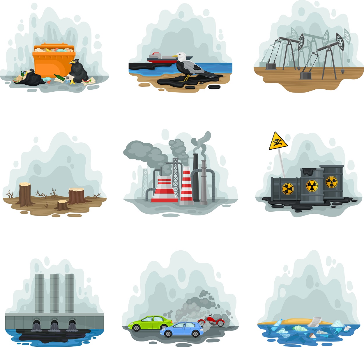 La contaminación puede originarse de diferentes formas y no se limita a elementos químicos visibles; también pueden considerarse contaminantes diversas formas de energía, como el sonido, la luz, el calor o la radiación. Un contaminante puede ser una sustancia sólida, líquida o gaseosa, una energía liberada en exceso o incluso un material natural que, al superar los niveles normales de concentración, se vuelve perjudicial para el entorno.