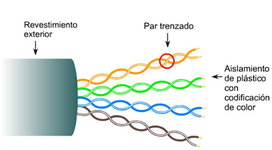 El cable par trenzado es el cable mas utilizado, este cable se utiliza en la mayoría de ruteadores, modems, computdores etc. Este cable consta de varios pares de cables más pequeños (hilos) de cobre trenzados entre ellos. Los hilos de cobre se encuentran encerrados por un revestimiento protector y el número de pares que incluye puede variar entre cada uno. Al momento de trenzar los hilos existen 2 diferentes formas dependiendo las necesidades ya sea tipo UTP o tipo STP.